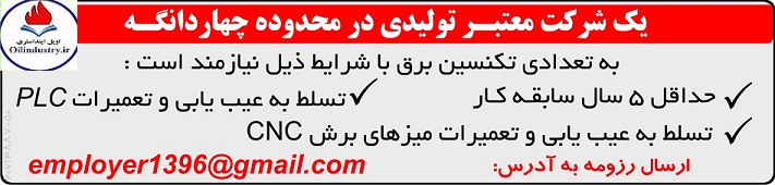 استخدام چند نفر تکنسین برق در یک شرکت تولیدی در محدوده چهاردانگه ۱۳۹۸/۰۲/۱۵