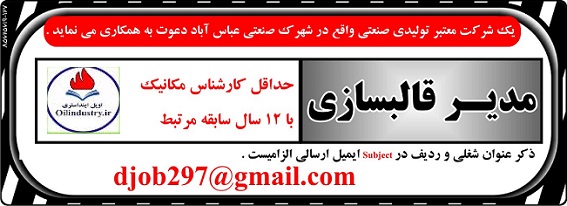 یک شرکت معتبر تولیدی واقع صنعتی در شهرک صنعتی شمس اباد از کارشناسان مکانیک دعوت به همکاری می نماید.