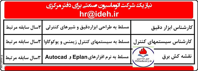 استخدام 3 عنوان شغلی برای کارشناسان ابزاردقیق - سیستم های کنترل و نقشه کش برق در یک شرکت اتوماسیون صنعتی ۱۳۹۸/۰۳/۰۴