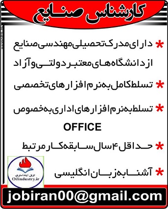 استخدام کارشناس صنایع (آشنا به زبان انگلیسی) ۱۳۹۸/۰۳/۰۸