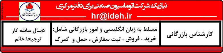استخدام کارشناس بازرگانی جهت فعالیت در یک شرکت اتوماسیون صنعتی ۱۳۹۸/۰۳/۱۲