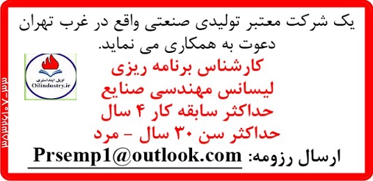 یک شرکت تولیدی صنعتی واقع در غرب تهران از کارشناسان مهندسی صنایع دعوت به همکاری می نماید.