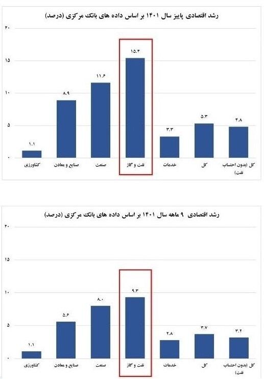 به گزارش اویل اینداستری مطابق گزارش بانک مرکزی رشد اقتصادی گروه نفت و گاز در ۳ ماهه پاییز ۱۴۰۱ و ۹ ماهه امسال بهترتیب ۱۵.۴ و ۹.۳ درصد بوده که بالاترین رشد اقتصادی در بازه مورد اشاره است و بخشی از آن در نتیجه تکمیل و بهرهبرداری از طرحهای نیمهتمام است.
