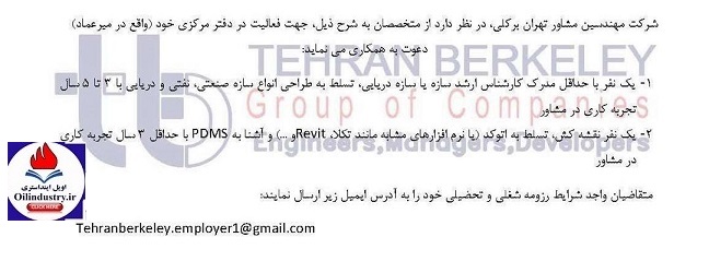 شرکت مهندسین مشاور تهران برکلی از کارشناسان ارشد سازه یا سازه دریایی - نقشه کش سازه دعوت به همکاری می نماید.