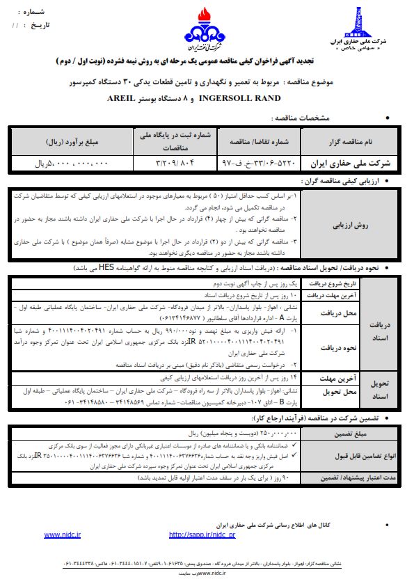 | شماره مناقصه | ۹۷-۳۳-۰۶-۵۲۲۰ |